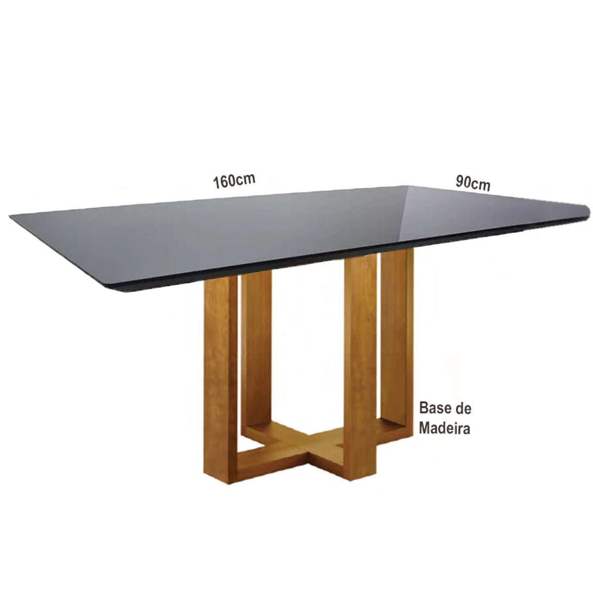Mesa Imbuia 6 Lugares - Base de Madeira - Canto Moeda - Tampo Vidro Preto